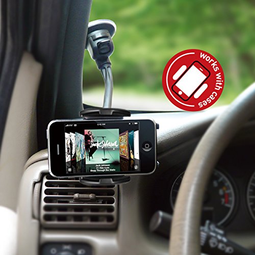 This Macally MGRIP suction cup Smartphone car mount is able to hold most cell phones. Adjustable to fit your device, the mount includes two arms and fold-down feet to keep your phone in an esaily accessible and viewable mode, providing handsfree use of your device while following GPS, taking a call, or just listening to music.
