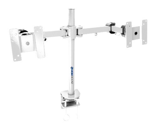 Monmount LCD-194W Dual LCD Monitor Stand Desk Clamp Holds Up To 24" Monitors - White