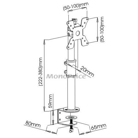 Monoprice Desk Clamp Monitor Stand - This single monitor desk mount from Monoprice lets you clamp your computer monitor to your desk to save on desk space. By positioning your monitor at eye level, you can reduce back strain at work or at home. The desk clamp design affixes your monitor to any surface between .87" and 2.25" thick.
