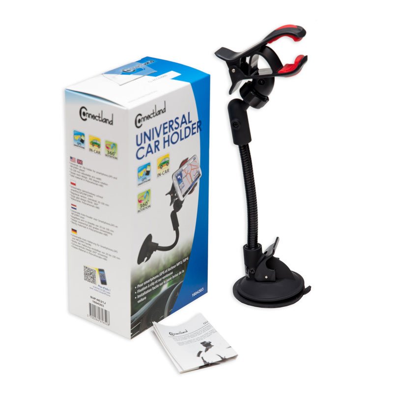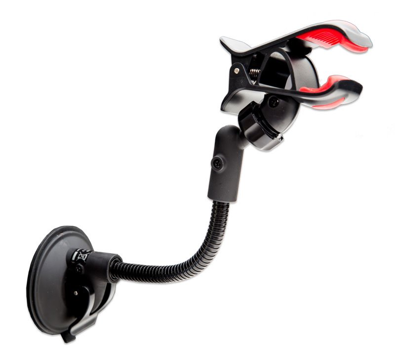 Universal Car Clip Holder for Smartphones, GPS, and MP3/MP4 Player. Adjustable Arm Width. Goose Neck Design with 360-degree Rotation.. Cell phone mounts. Use this Syba Suction Cup Smartphone Car Mount to hold your iPhone or Samsung Galaxy mobile device. Able to hold most smartphones today, this alligator clip holder will firmly grip your device, keeping it in view to see your GPS, or who's calling. Attaches to your windshield or flat surface of your dash.